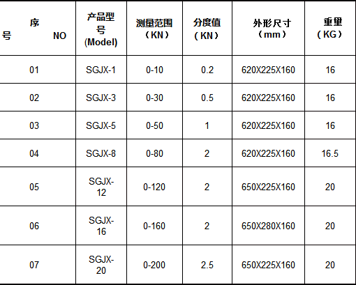 2.拉力表測(cè)量范圍為0--200KN 。