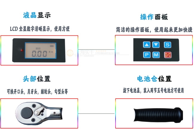 6.清零:在測量前將扳手處在自然水平空載狀態(tài)下,按‘O/C’鍵*現有的顯示數值,使當前狀態(tài)為‘零位’